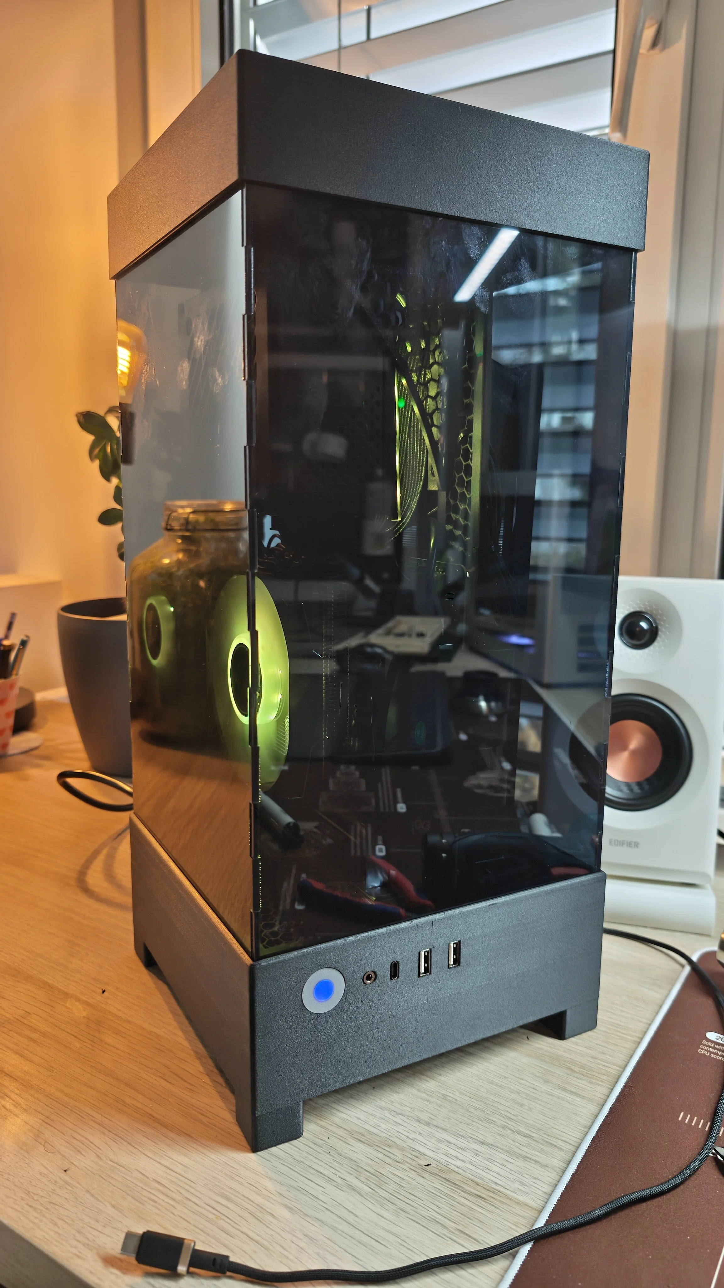mini GLAS extreme represents my ongoing effort to push the boundaries of compact, transparent PC design – where every component is visible, yet the system remains fully functional and cool.